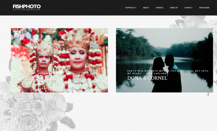 Website ini adalah contoh dari website UKM photo studio. Di website ini yang ditonjolkan adalah foto hasil project studio dan make up mereka. Fish Photo fokus pada sosial media Instagram dan website karena menonjolkan hasil photo studio mereka. Di website mereka ditampilkan foto pernikahan, pertunangan, personal, dan studio thematic hasil studio foto Fish Photo. Kecepatan website ini lumayan walau banyak meload foto – foto.