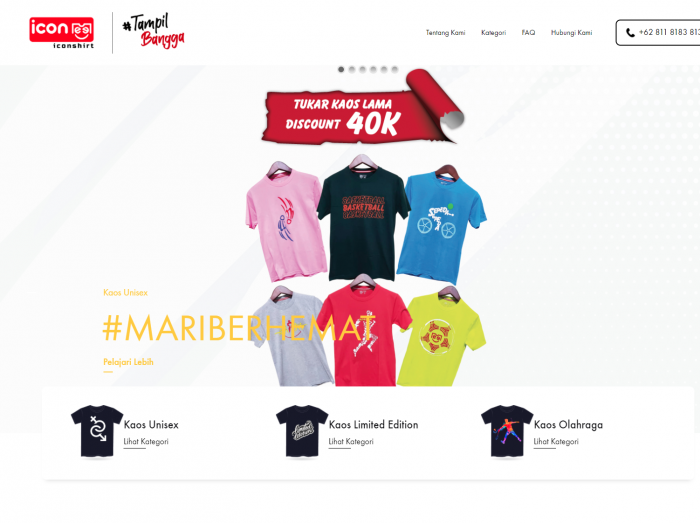 Website iconee.id adalah website yang menjual kaos ikon sports. Termasuk website yang menjual barang untuk gaya hidup. Websitenya berisi tentang icoone.id, kategori, FAQ, dan kontak mereka. Sosial media diantaranya Twitter, Facebook, Instagram dan Pinterest. Juga ada whatsapp untuk menghubungi mereka. Websitenya keren dan responsif, terdapat google maps, ada form penawaran menjadi reseller dari iconee.id.